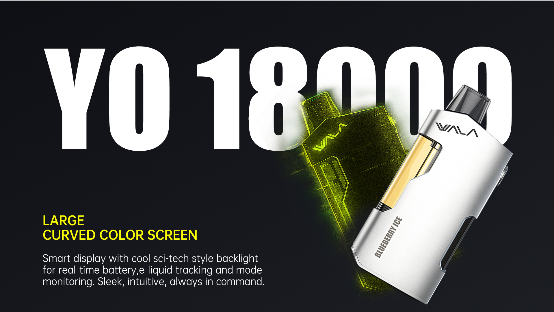 Product nameWALA YO 18000 Disposable VapePuff countUp to 18,000 puffs (actual performance varies by usage style)E-liquid capacity18 ml pre-filled e-liquidNicotine strength3.5% nicotine (≈35 mg/ml, refer to packaging for exact values)Battery1500 mAh built-in rechargeable batteryCoil typeDual mesh coil atomiserActivationInhale-activated, no buttons requiredDimensionsApprox. 46 × 22 × 106 mmWeightApprox. 92.5 g (may vary slightly by batch)Usage stylePre-filled, sealed, non-refillable disposable; coil and e-liquid are not user-replaceableUser guide